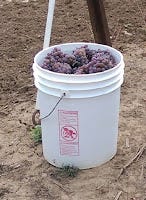 And if we have done a good job in the field, any given vine will have about 12 clusters representing 3 pounds of wine berries. Now, you see where we are going. If a harvest bucket weighs in at around 20 pounds, this means there are going to be somewhere around 80 clusters in there. This is true for the metrically oriented reader as well, no conversion required - yet.