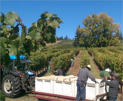 We go with the 20 human option, spread over a few weeks in the time space continuum. To give credit where credit is due, the human harvesters work very, very hard. It is physically demanding work and not well suited for the chronologically advanced. As most of you know, premium Oregon vineyards are situated on hillsides which makes running up and back down the rows more challenging. This adds a dimension of complexity that is clearly present in all of our wines.